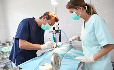 Surgery is a special room where all major sterile procedures are performed. This room is equipped with sophisticated equipment including life support systems, respirators and monitors.